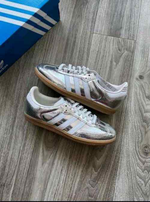 Adidass Samba OG Silver Metallic Cracked Leather