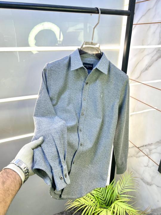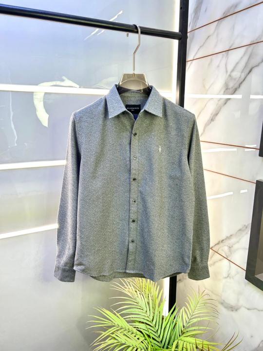 Home Shirts Allsaints Imported Grey Oxford Lycra Premium Shirts F3484-GY