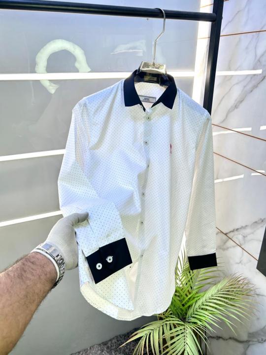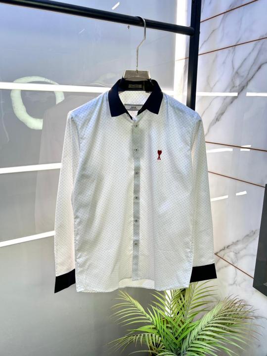 Home Shirts Ami Logo Dotted Premium White Shirt F3223-WH