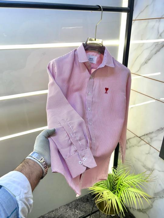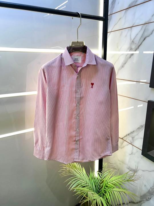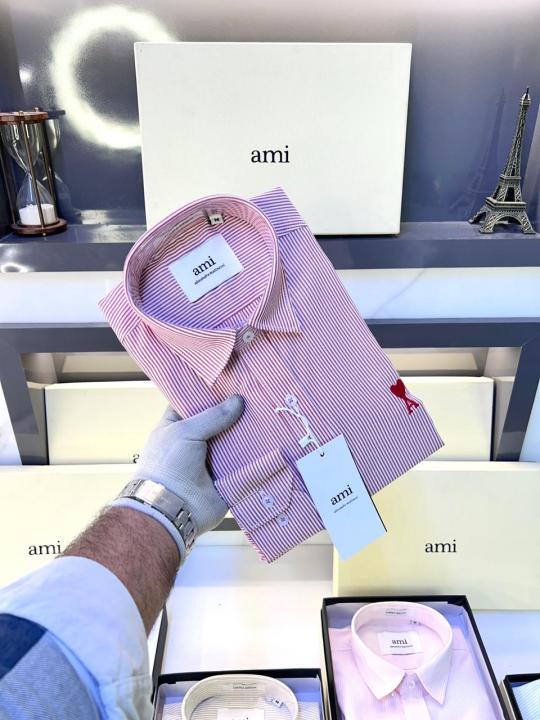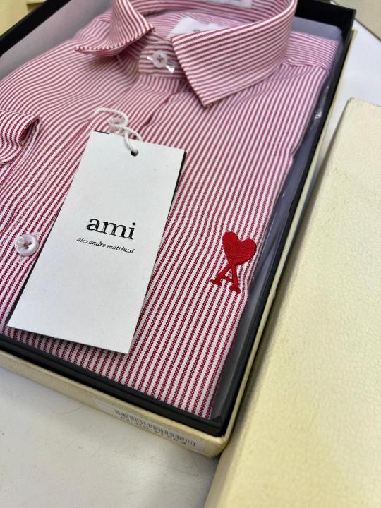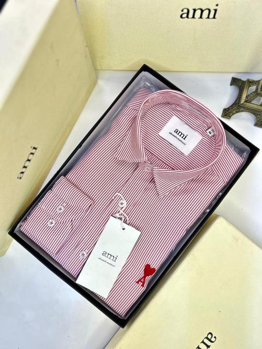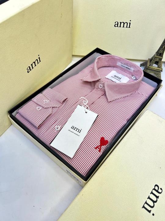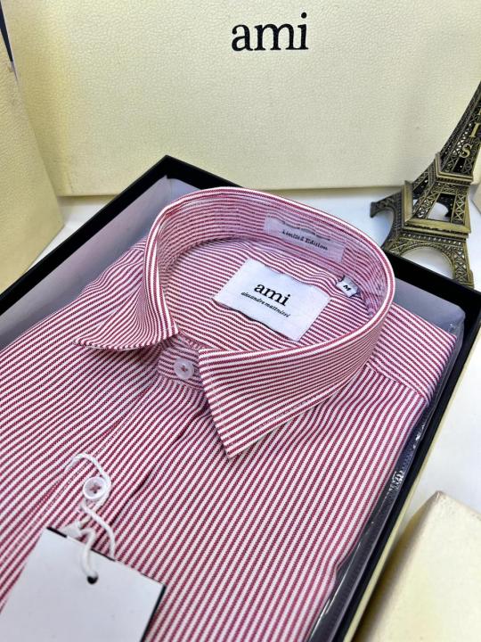 Home Shirts Ami Logo Red Premium Lining Shirt With Brand Box Packing F3244-RE