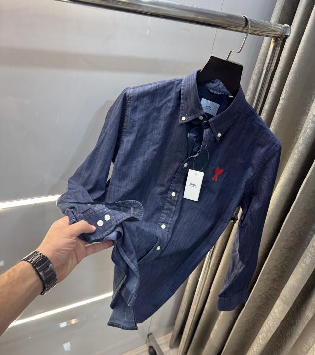 Ami Paris Dark Blue Embroidery Logo Premium Denim Shirt
