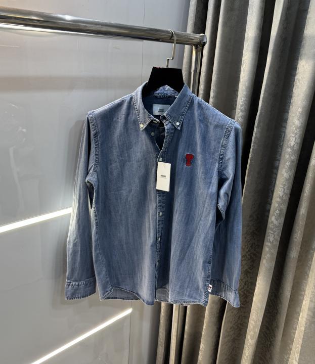 Ami Paris Dark Blue Embroidery Logo Premium Denim Shirt