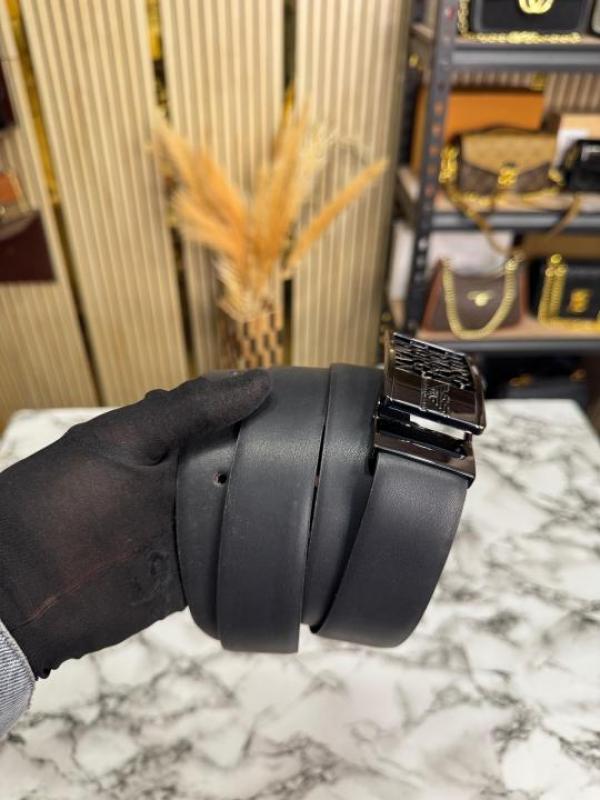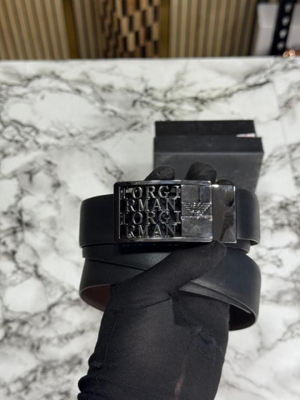 Arman_i Black Leather Belt With Black Logo Plate Buckle Includes Box (2)