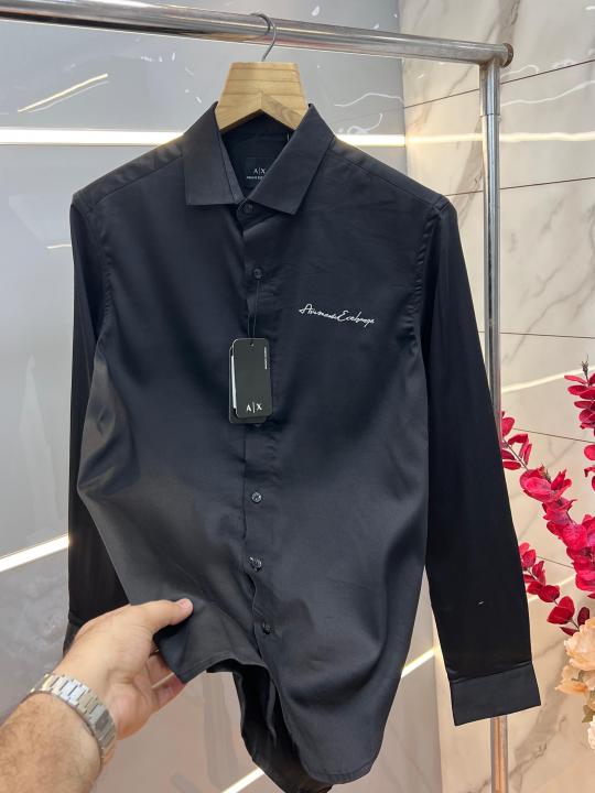Arman i Exchange Black Premium Embroidered Logo Shirt With custom Branded Button Tagging And Brand Packing 3265
