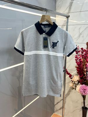 Ralp h Laure n Grey Premium Cotton Matty fabric Polo Tshirt with Front Design and Embroidered Logo Brand Box 3826