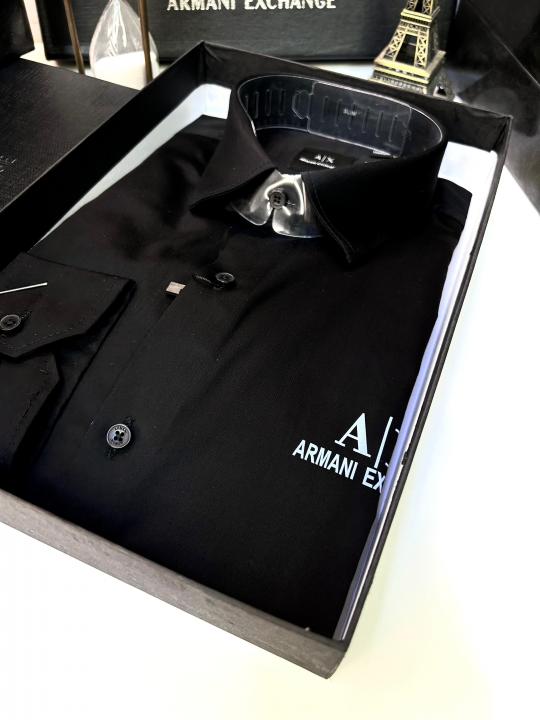 Home Shirts Arman_i Exchange Reflective Black Premium Shirt With Brand Box Packing And Carry Bag F2500-BL