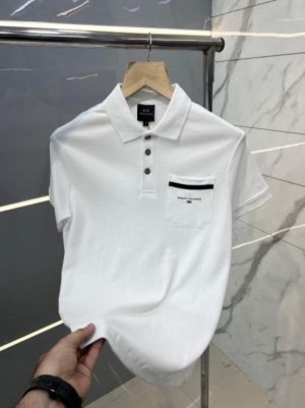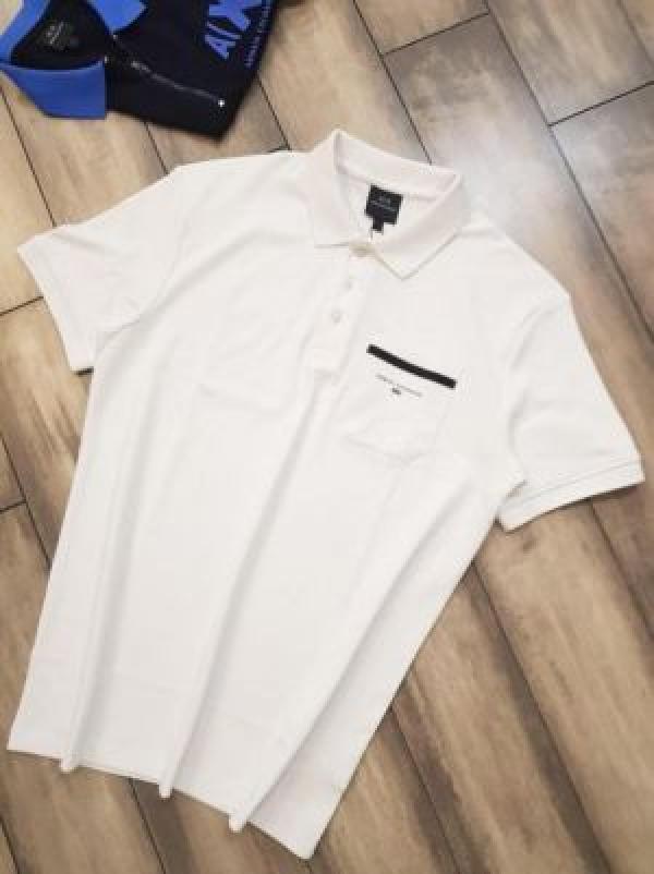 Home T-Shirts Arman I Exchange White Premium Polo Tshirt With 240 Gsm Interlock Cotton Lycra Fabric With Emboss Logo Pocket Style 2586_2710