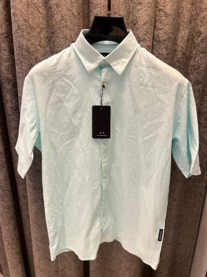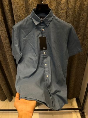 Lacost e Blue Premium Shirt 100% 2ply Cotton Peach Finish Fabric With custom Branded Button Tagging And Brand Poly Bag 4039