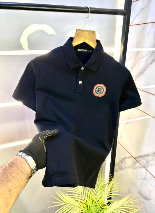 Home T-Shirts Balmai n Paris Black Imported Back Print Premium Polo Collar Neck T-shirt F3126-B2