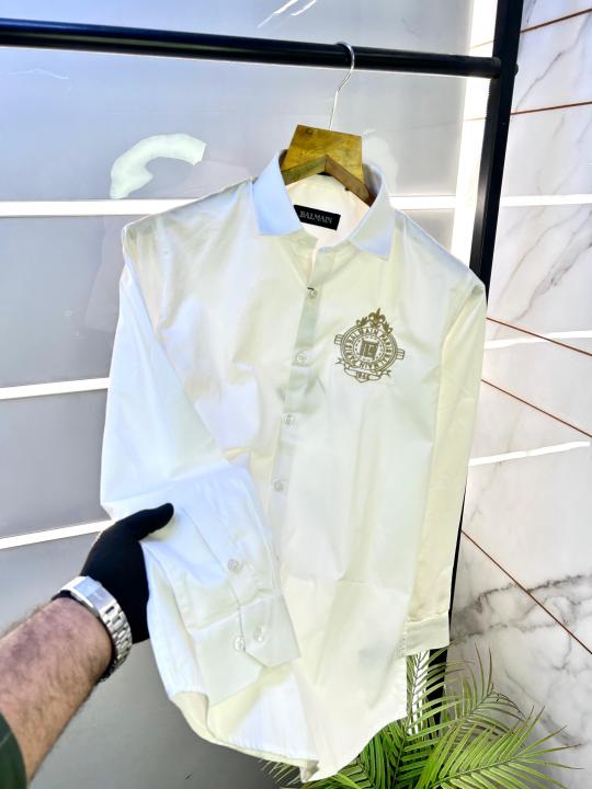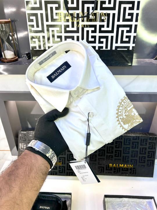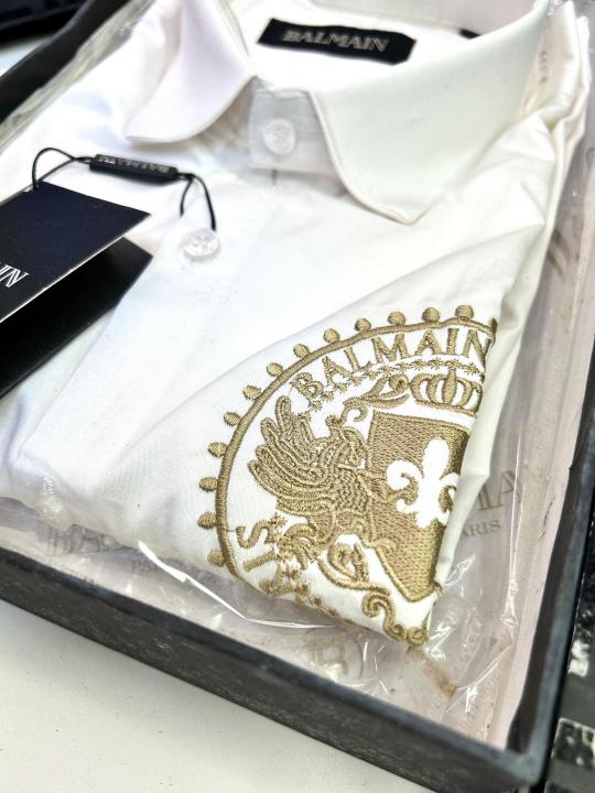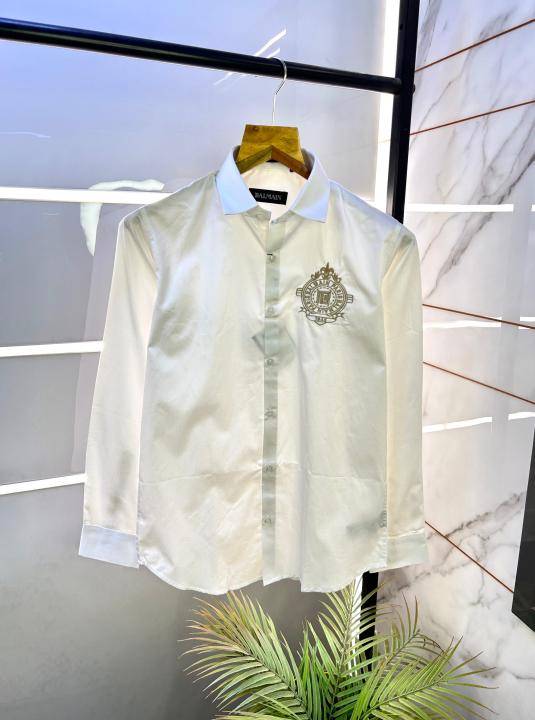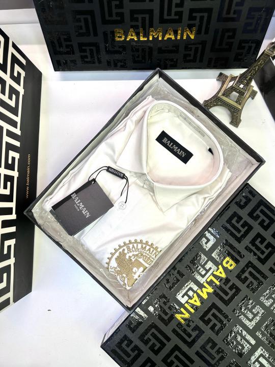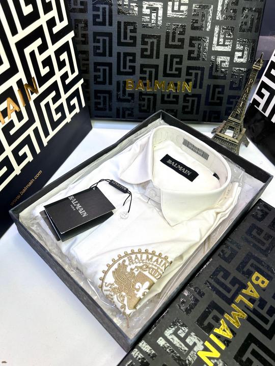 Balmai n Paris Embroidery Logo White Premium Shirt With Brand Box Packing And Carry Bag F1453-WH
