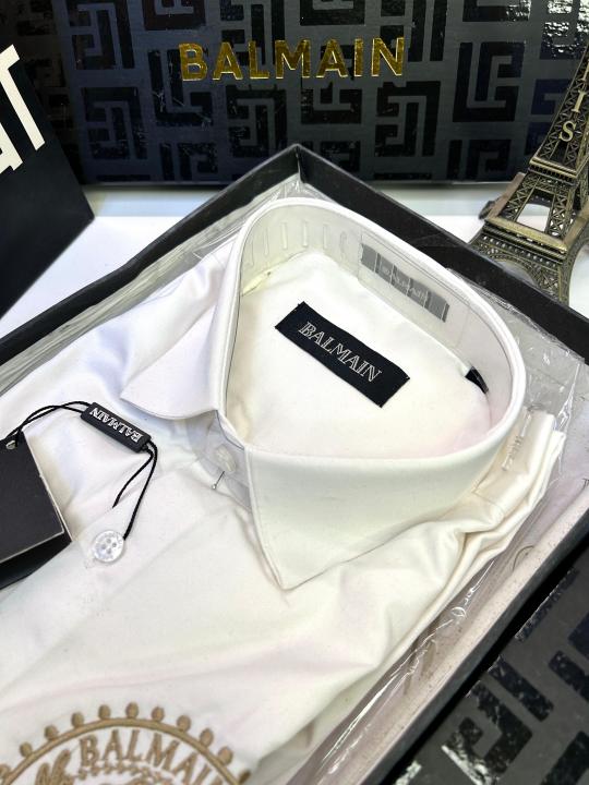Home Shirts Balmai n Paris Embroidery Logo White Premium Shirt With Brand Box Packing And Carry Bag F1453-WH