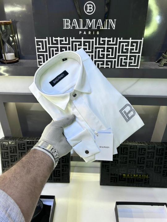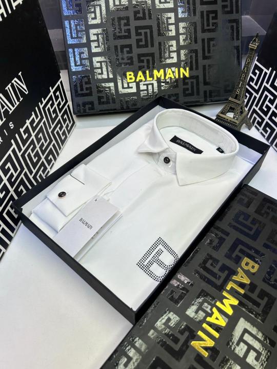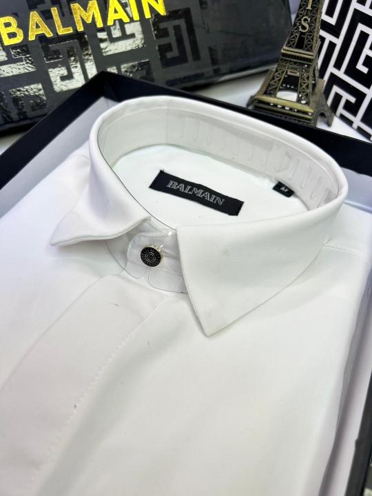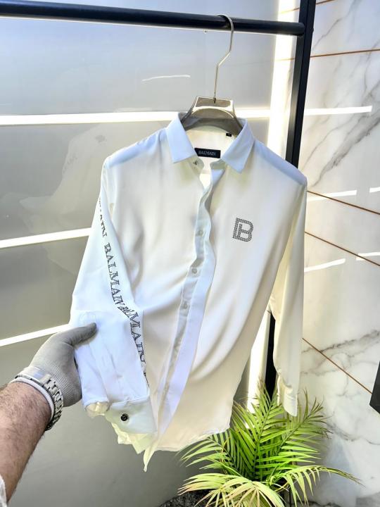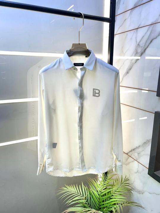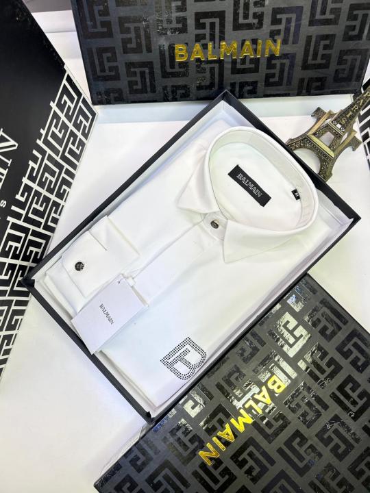 Home Shirts Balmai n Paris Logo White Premium Shirt With Brand Box Packing And Carry Bag F3076-WH