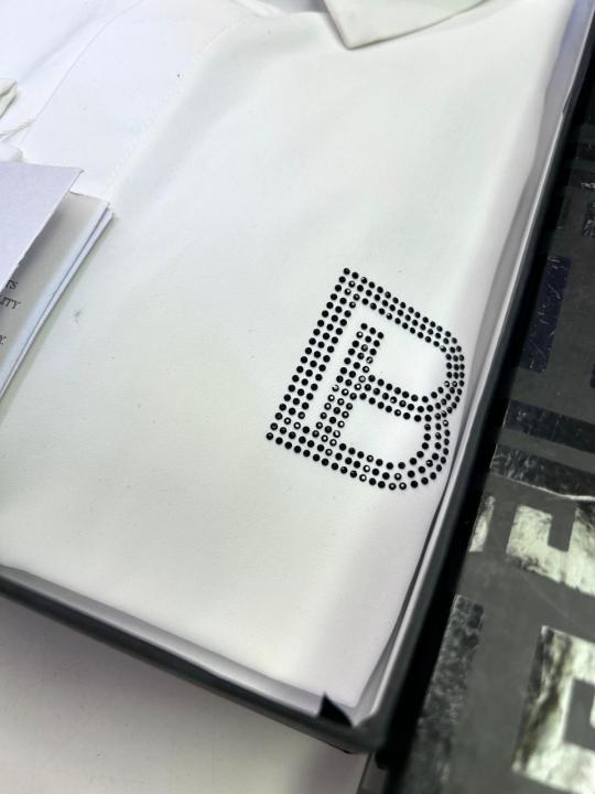 Balmai n Paris Logo White Premium Shirt With Brand Box Packing And Carry Bag F3076-WH