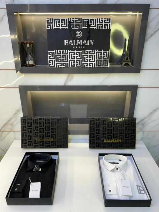 Balmai n Paris Logo Black Premium Shirt With Brand Box Packing And Carry Bag F3076-BL