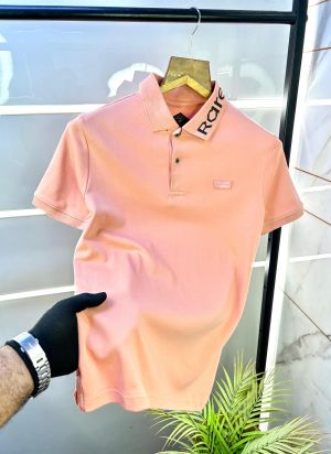 Hugo Bos s Beige Premium Imported 240 GSM Interlock Lycra Fabric Polo Tshirt with Collar Design and Emboss Logo 3605