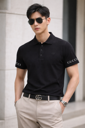 Lacost e Black Polo Premium Collar Neck T-shirt F3500-BL