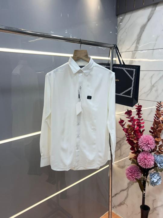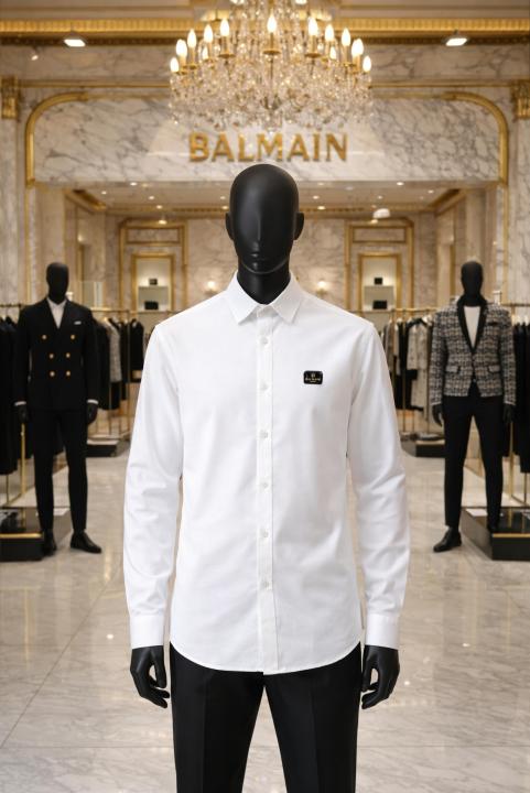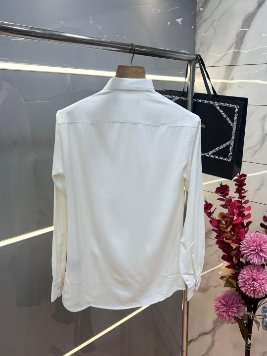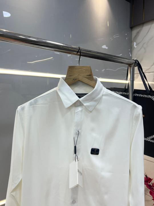 Home Shirts Balmai n Paris White Premium Imported Japanese lycra fabric Shirt with Metal Logo And Brand Packing 3671