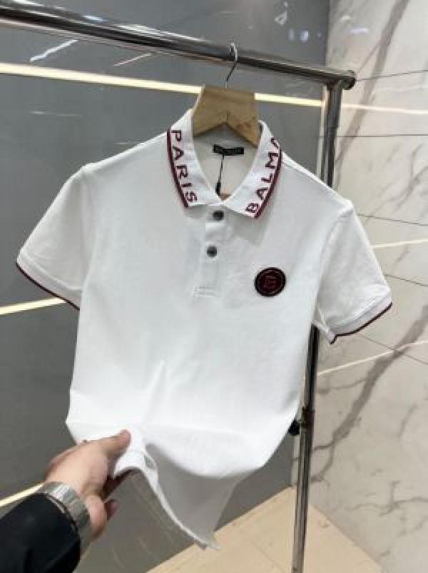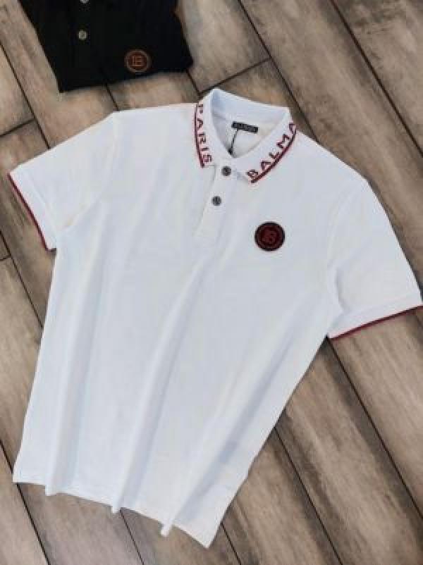 Home T-Shirts Balmai n Paris White Premium Imported Pique Polo Tshirt with Collar Design And Rubber Metal Logo 2716