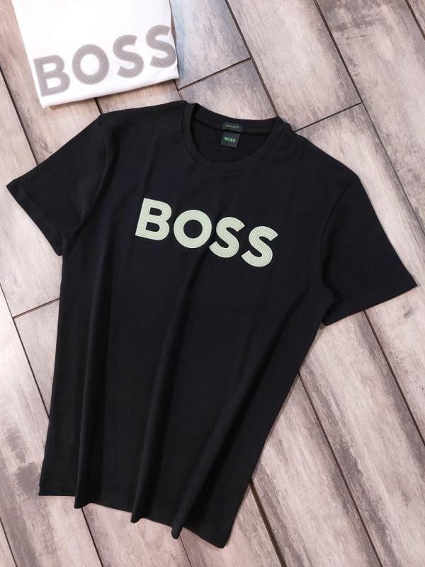 Home T-Shirts Boss Black Embossed Print Premium Round Neck Polo T-shirt F3423-BL