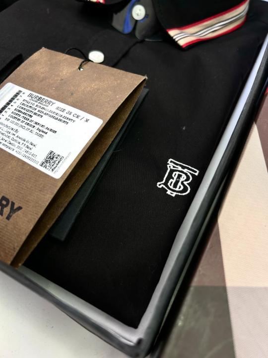 Burberr y Black Embroidery Logo Premium Shirt With Brand Box Packing and carry bag F2713-BL