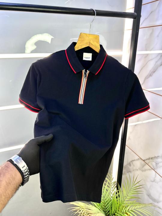 Home T-Shirts Burberr y Black Premium Collar Neck Polo T-shirt F3258-B2