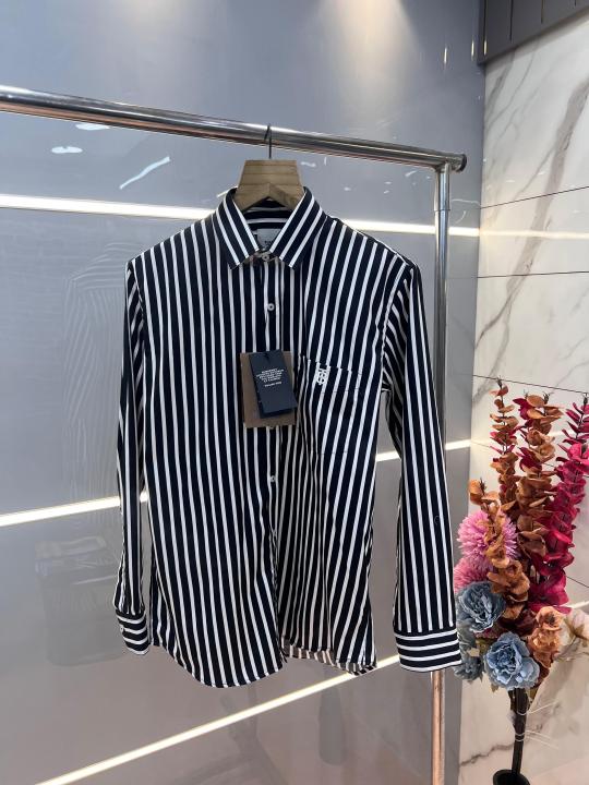 Burberr y Black Premium Imported Cotton twill fabric Embroidered Logo Shirt with custom Branded Button Tagging And Brand Packing 3255