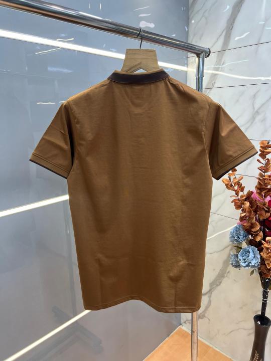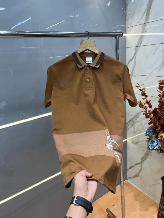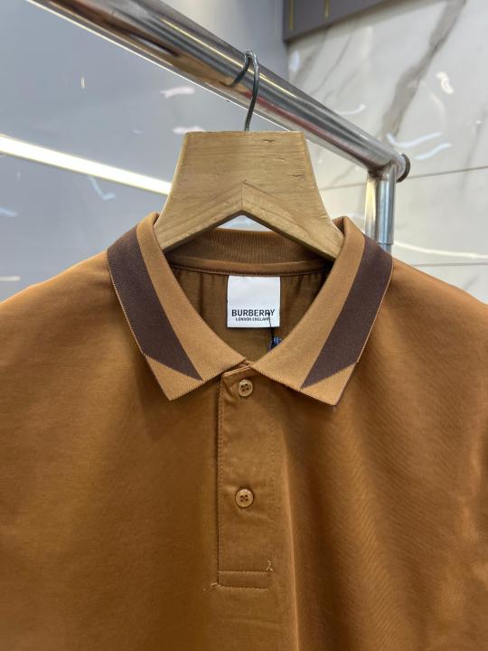 Home T-Shirts Burberr y Brown Premium Imported 240 GSM Interlock Lycra Fabric Polo Tshirt with Collar Design and Emboss Logo 4056