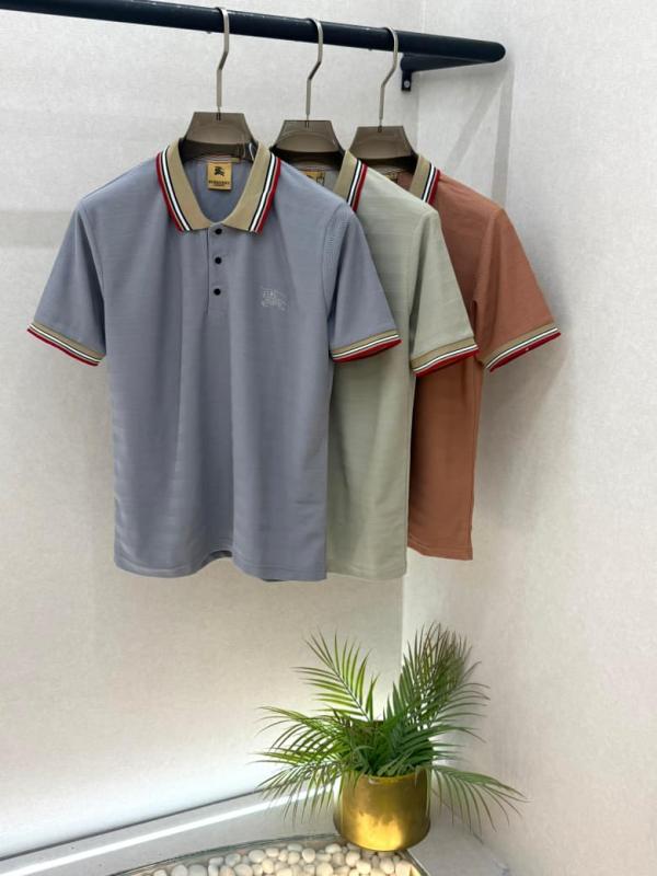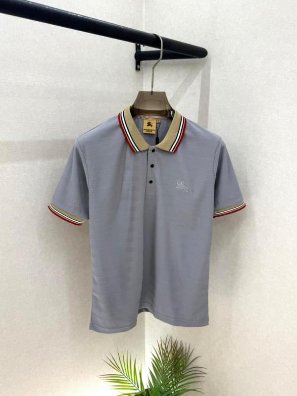 Home T-Shirts Burberr y Grey Embroidery Logo Premium Collar Neck Polo T-shirt With Brand Box Packing F3582-GY