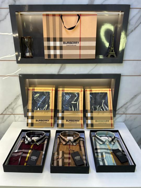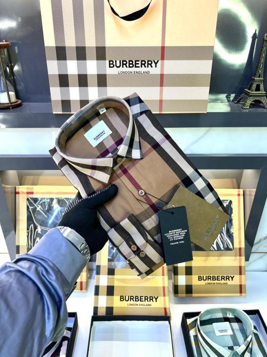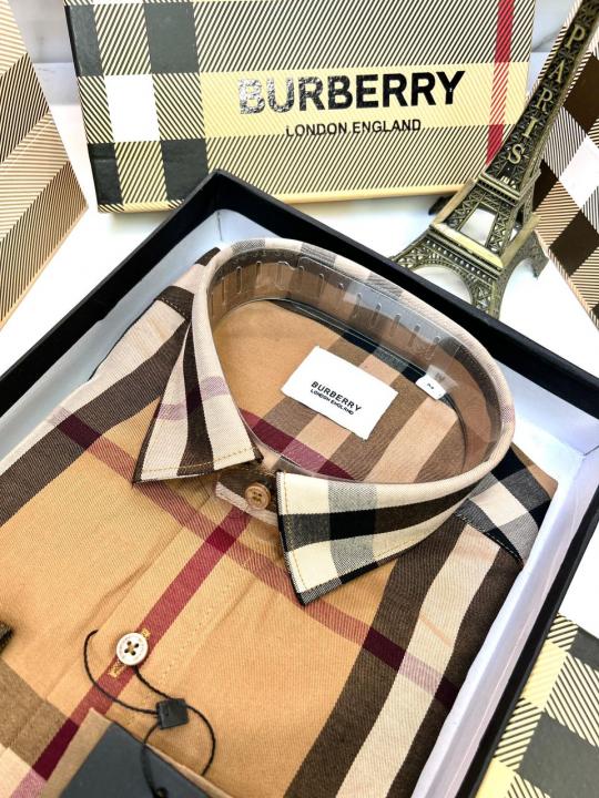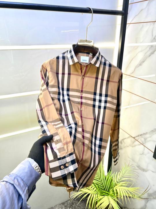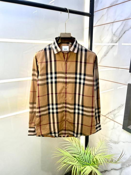 Home Shirts Burberr y Khakhi Premium Checks Shirt With Brand Box Packing and Carry Bag F2981-KH
