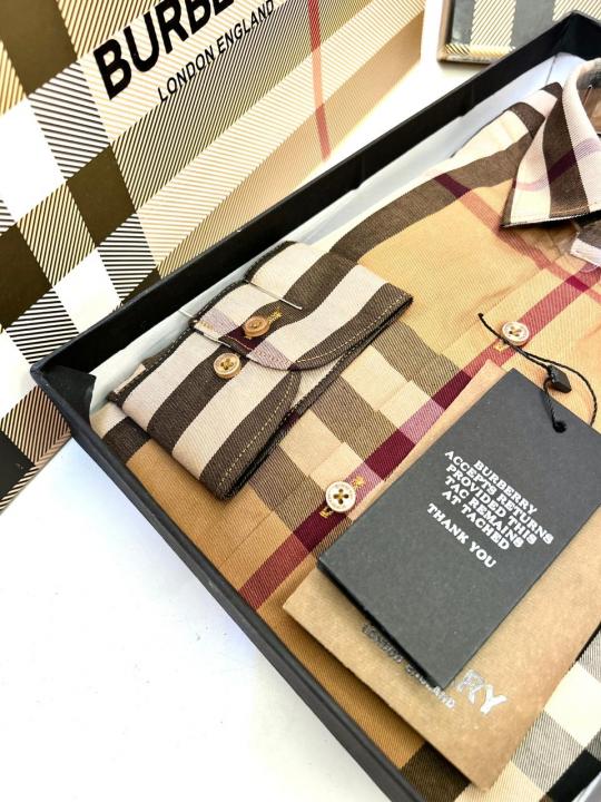 Burberr y Khakhi Premium Checks Shirt With Brand Box Packing and Carry Bag F2981-KH