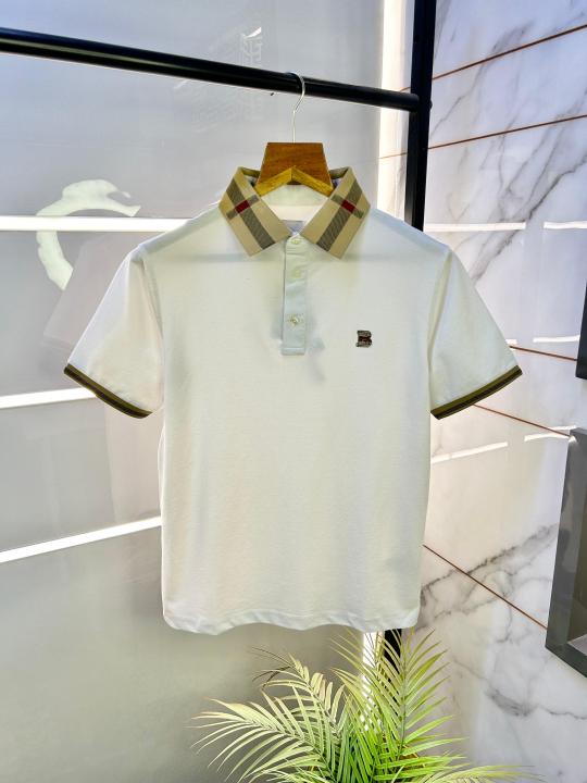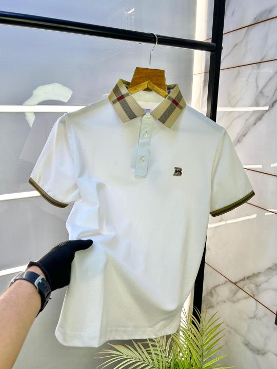 Home T-Shirts Burberr y Logo White Collar Neck Premium Polo T-shirt F2593-WH