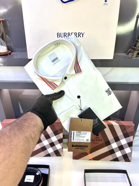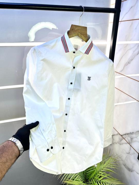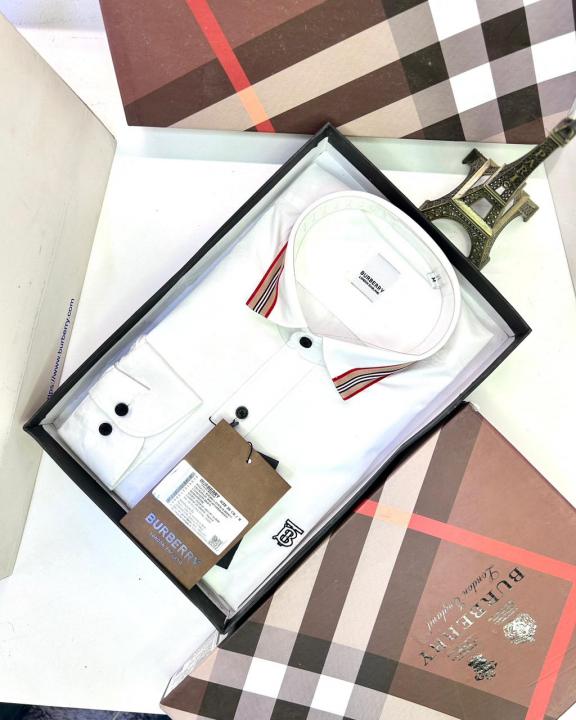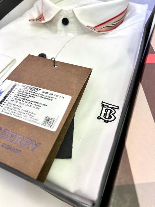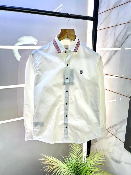 Burberr y White Embroidery Logo Premium Shirt With Brand Box Packing and carry bag F2741-WH