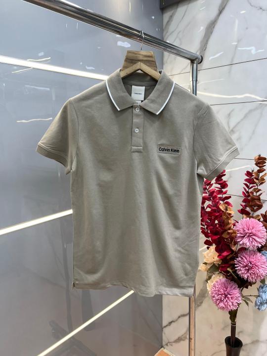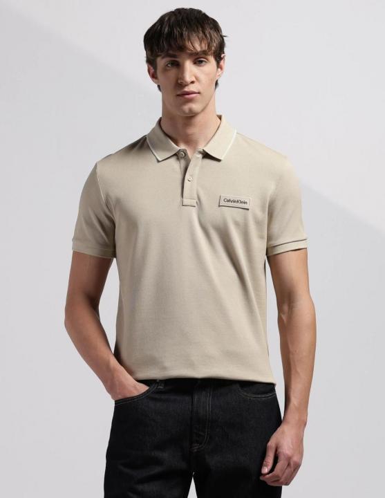 Home T-Shirts Calvin Klei n Beige Premium Imported 240 GSM Interlock Lycra Fabric Polo Tshirt with Collar Design and Embroidered Logo 4069
