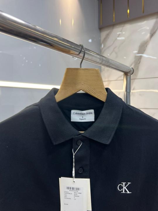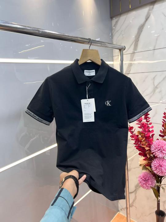 Calvin Klei n Black Premium Cotton Pique fabric Polo Tshirt with Sleeves Design and Embroidered Logo 3648