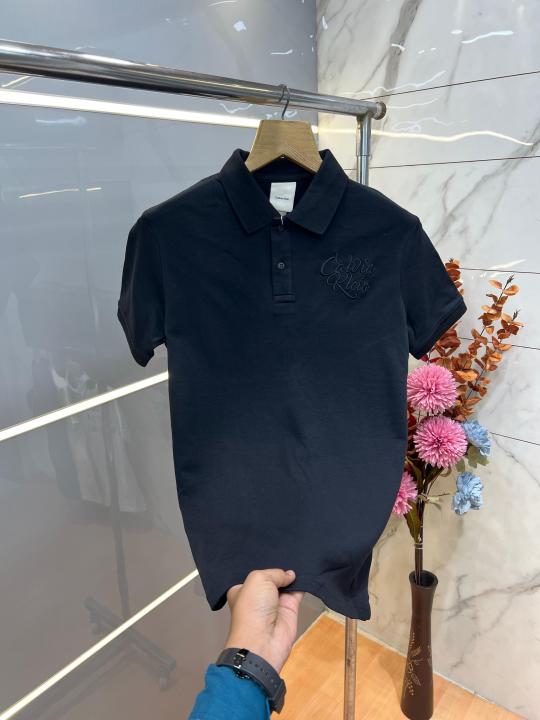 Calvin Klei n Black Premium Imported Compact Yarn 240 GSM Interlock Fabric Polo Tshirt with Embroidered Logo 3929