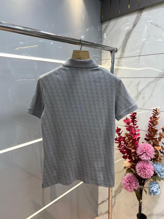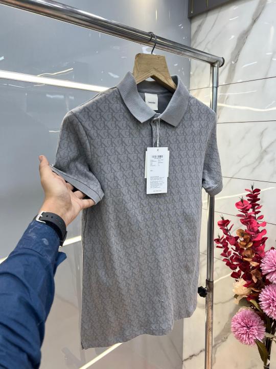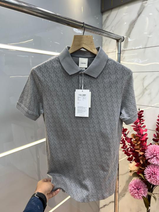 Home T-Shirts Calvin Klei n Grey Premium 240 gsm interlock compact cotton fabric Polo Tshirt with Allover Monogram Print 3735