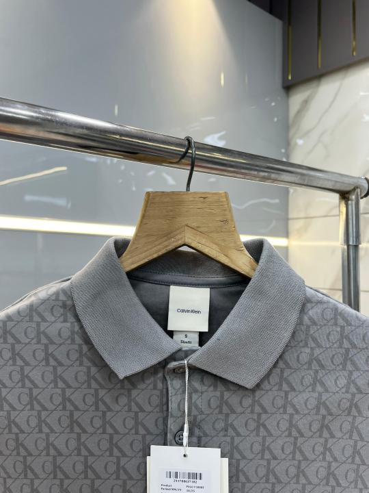 Calvin Klei n Grey Premium 240 gsm interlock compact cotton fabric Polo Tshirt with Allover Monogram Print 3735