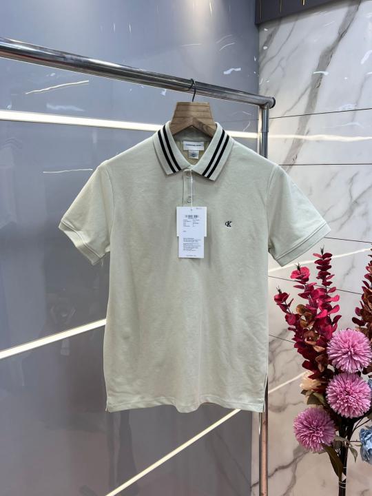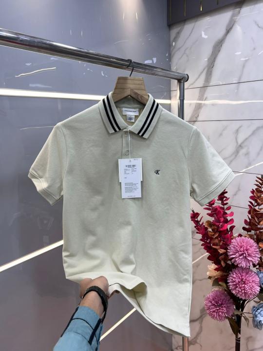 Calvin Klei n white Premium Cotton Pique fabric Polo Tshirt with Sleeves Design and Embroidered Logo 3647