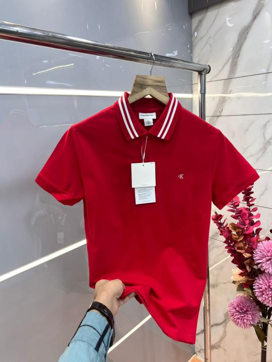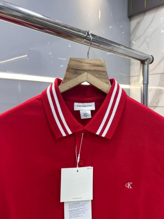 Home T-Shirts Calvin Klei n Red Premium Cotton Pique fabric Polo Tshirt with Collar Design and Embroidered Logo 3644