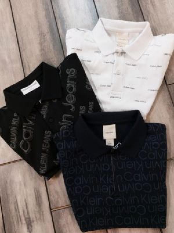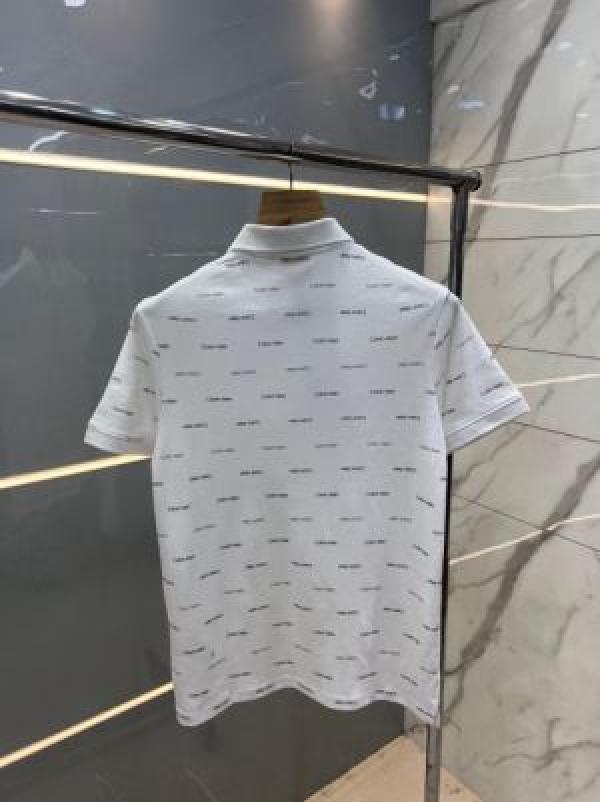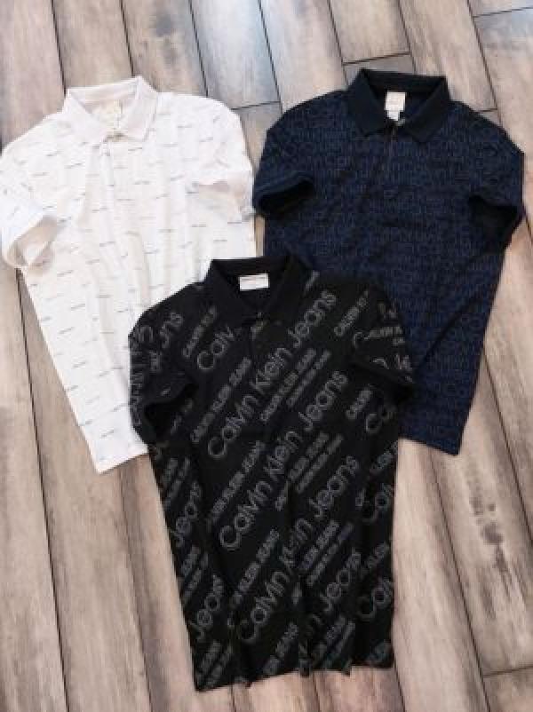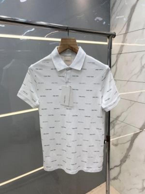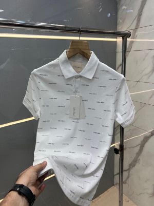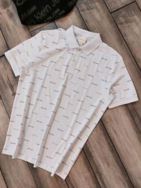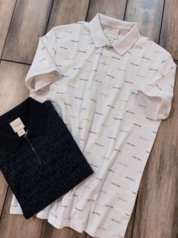Home T-Shirts Calvin Klei n White Premium 240gsm interlock cotton lycra fabric Polo Tshirt with All over Monogram Printed 2792