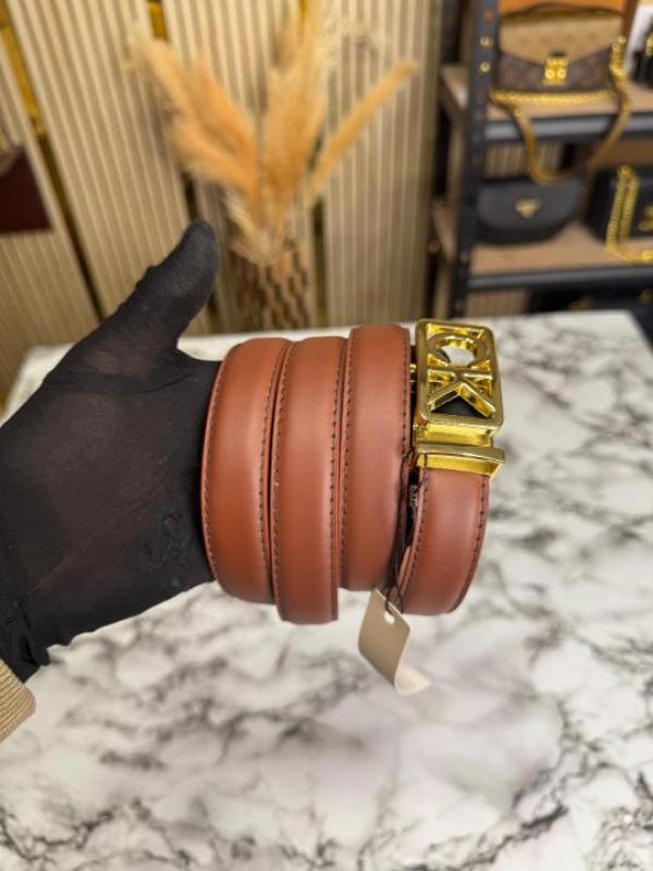 Calvin_Klein Tan Leather Belt with Gold CK Initial Buckle