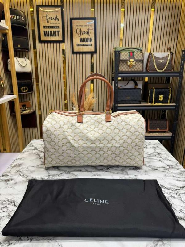 Celine Premium Quality Triomphe Canvas Duffle Travel Bag With Dust Bag (Brown)