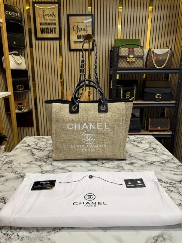 Chane_l Paris-Rue Cambon Timeless Tote Bag (Khaki Black) (V-979)