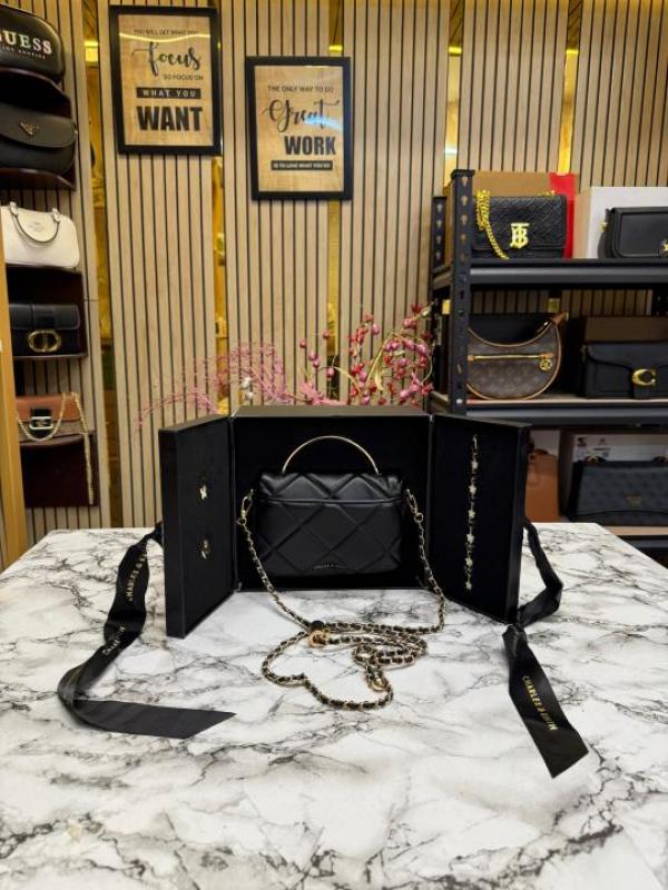 Charle_s & keith boxy quilted top handle bag gift set (black) (v-ck17)
