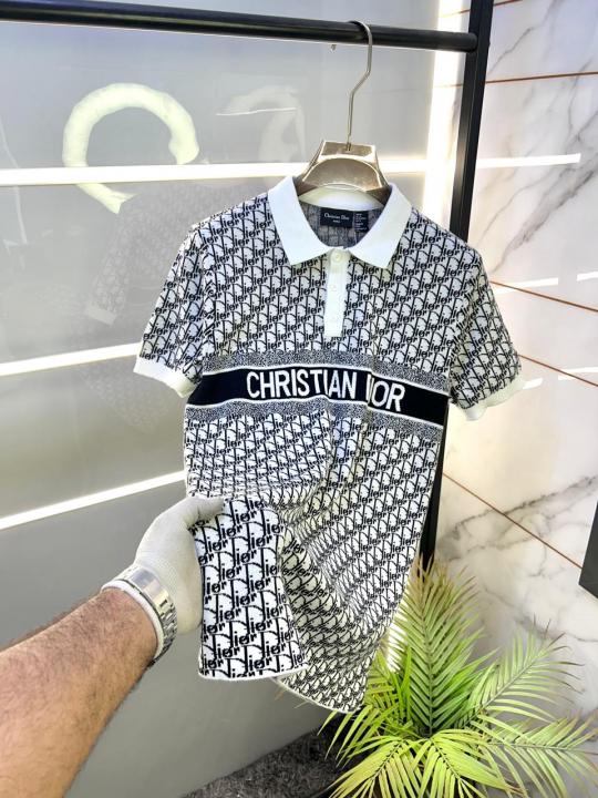 Christian Dio r Imported knitted Monogram Super Premium White Collar Neck Polo T-shirt F3481-WH