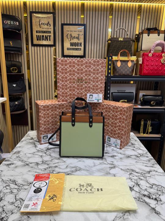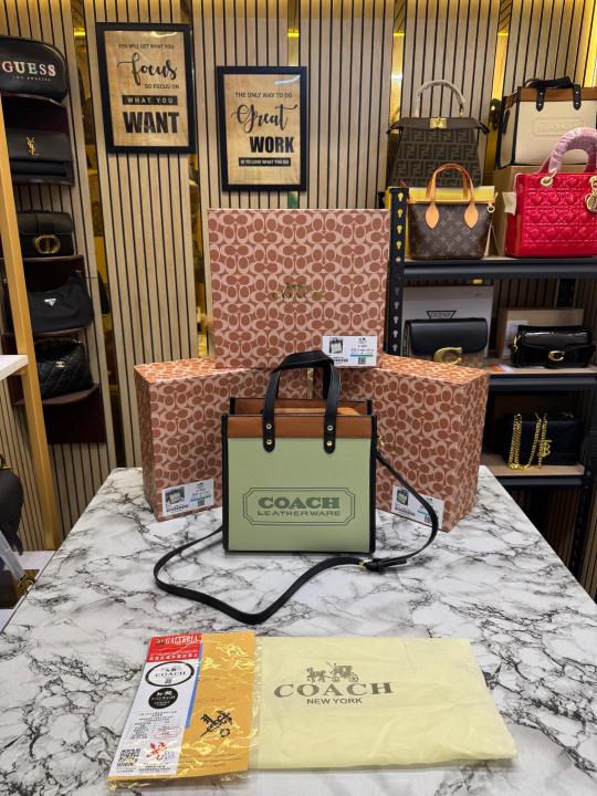 Coac_h Field Tote Mini Leatherware Print Colorblock Leather Crossbody Bag With Box And Dust Bag (C-80)(Green)