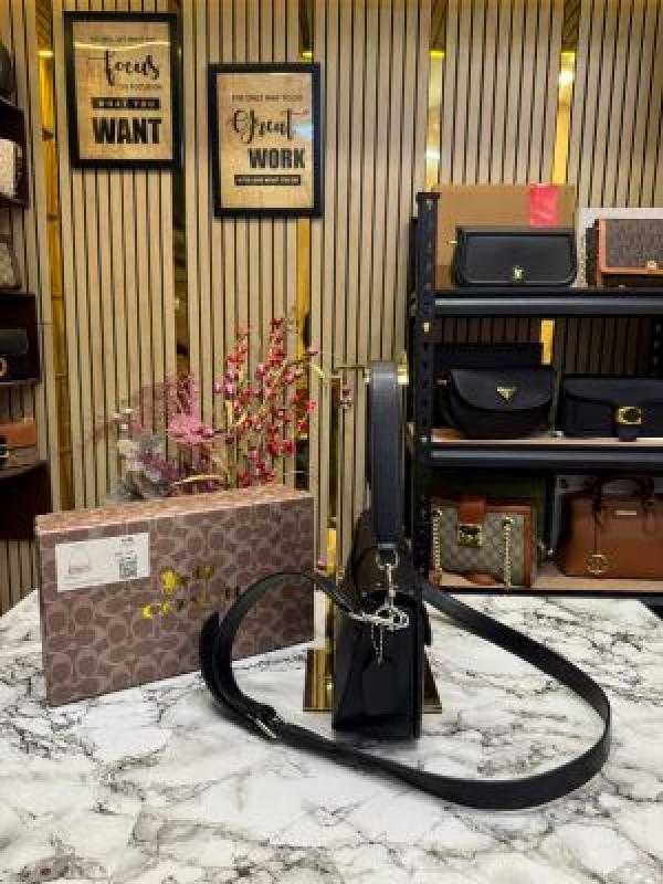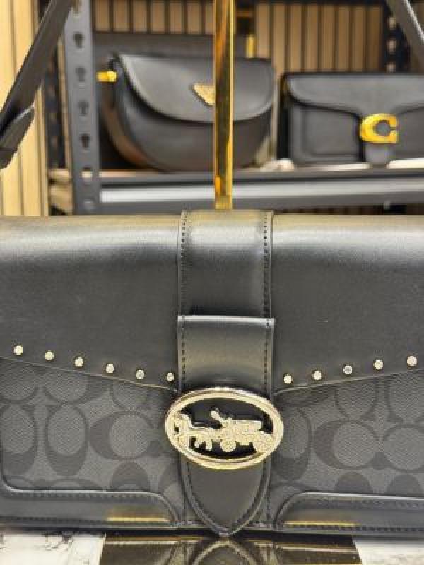 COAC_H GEORGIE SHOULDER BAG IN COLORBLOCK SIGNATURE CANVAS WITH RIVETS & OG BOX AND DUST BAG (BLACK)
