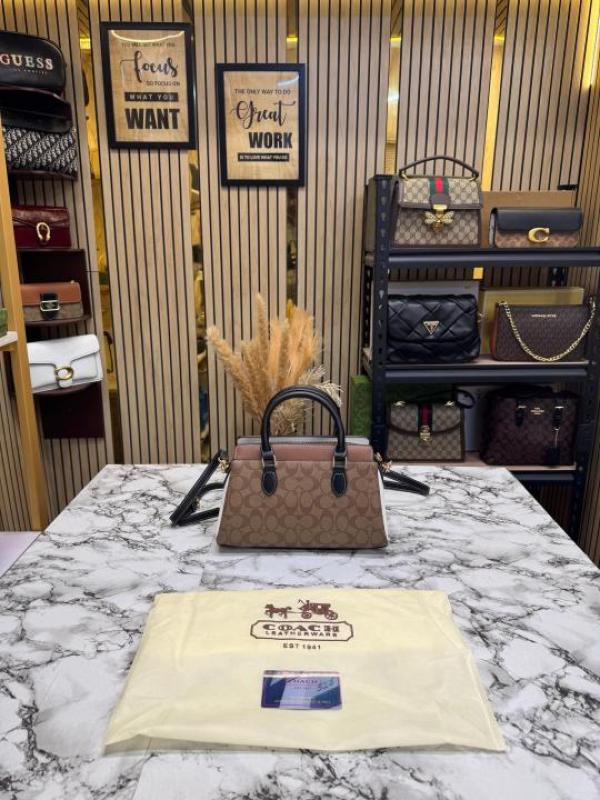 Coac_h Rowan Satchel Hand Bag Classic C Canvas With Dust Bag Including Card (Apricot)