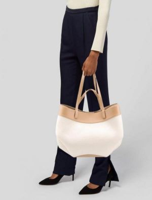 Polene Cyme Tisse Tote Bag Smooth Canvas Leather With Dust Bag (Apricot)