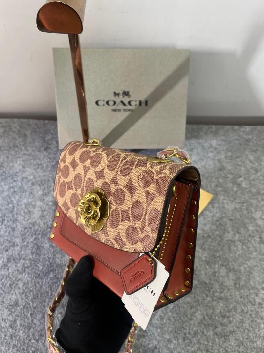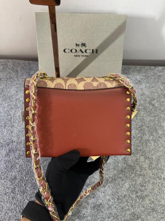 Home Hand bags Coach_Parker_Studded_Premium_Shoulder_Bag_With_OG_Box_&_Dust_Bag_(Brown-28032)